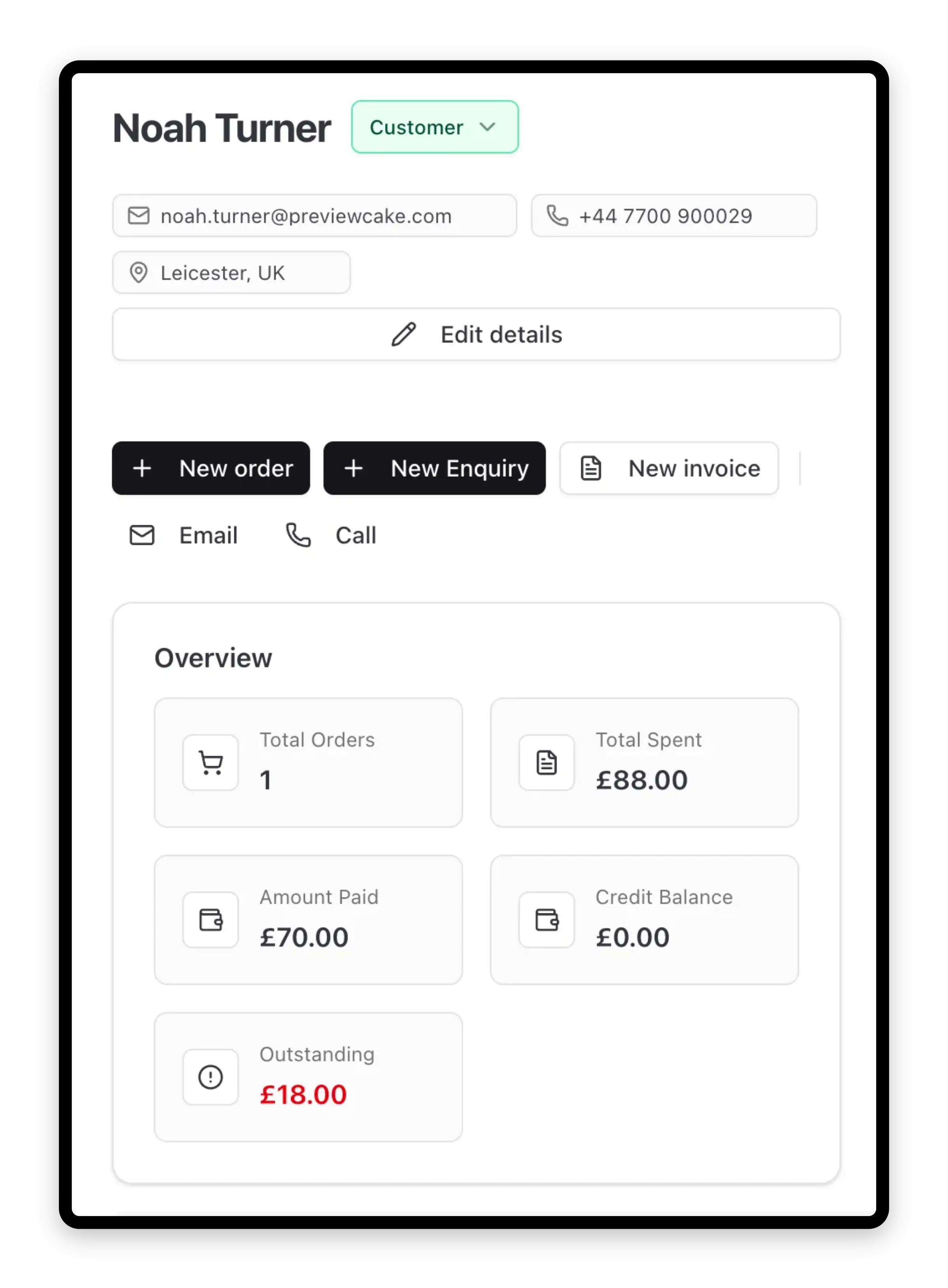 Manage the full lifecycle of every cake order, from the first enquiry through to delivery and final payment, in one connected system.